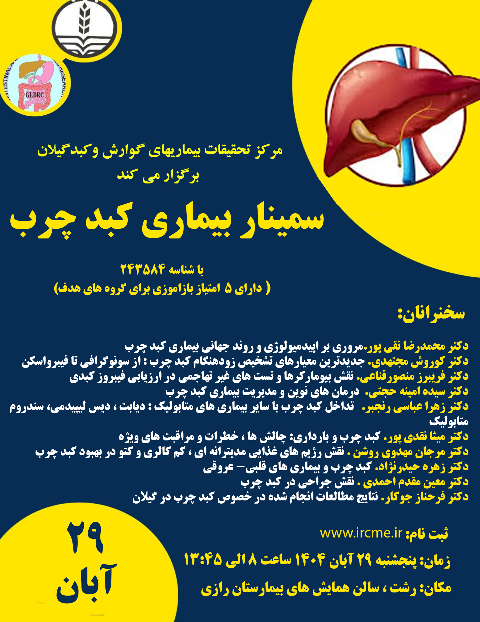 سمینار بیماری کبدچرب 1404/08/27 - 14:10 - تعداد بازدید خبر : 54 - کد خبر : 148089 - گروه خبری : رویدادها,اطلاعیه ها,اخبار اختصاصی - تعداد نظرات : 0 کپی لینک کوتاه